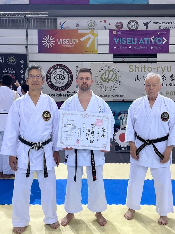 We are delighted to announce that Sensei Andy has successfuly passed his grading and has been promoted to the rank of 6th (Roku) Dan at the recent Portugal seminars.